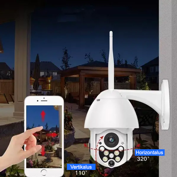 Sukasi 320° kampu horizontaliai ir 120° kampu vertikaliai, todėl galima aprėpti visą teritoriją. 4x skaitmeninis priartinimas leidžia iš arčiau pamatyti toliau esančius objektus, arba atitolinti vaizdą, kad matytumėte platesnį vaizdą.