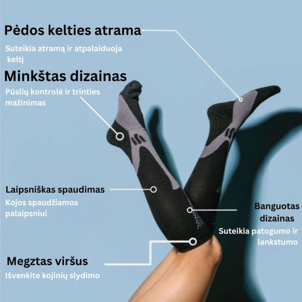 Visą dieną puikiai jauskitės ant kojų su PRESSOSOX kompresinėmis kojinėmis. Jos mažina patinimą ir malšina skausmą, suteikdamos patogią atramą, nesvarbu, ar esate darbe, ar keliaujate, ar sportuojate.