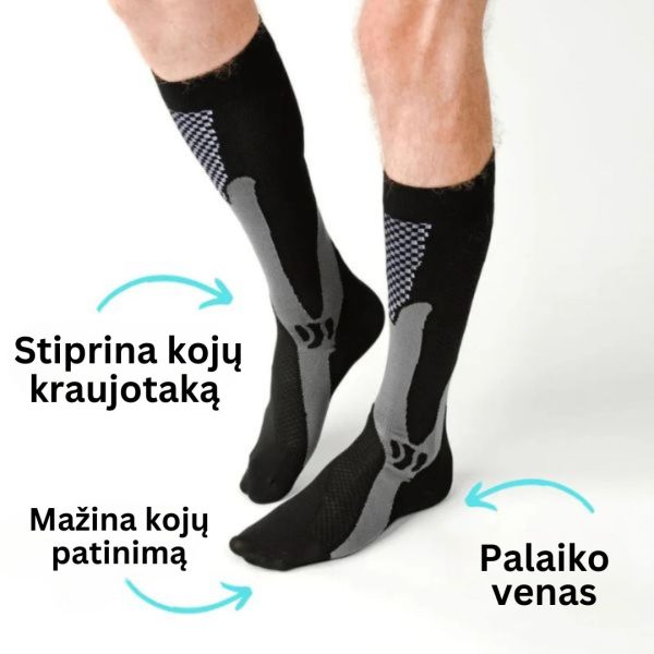 Šios kojinės padeda pagerinti kraujotaką, o tai reiškia mažesnį nuovargį ir daugiau energijos visai dienai. Puikiai tinka ilgoms valandoms ant kojų ar intensyviai fizinei veiklai.