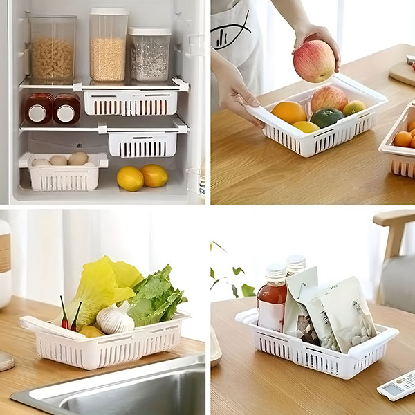 - Pakabinami stalčiai: Efektyvus šaldytuvo erdvės išnaudojimas. Galima pakabinti ant šaldytuvo lentynų.
