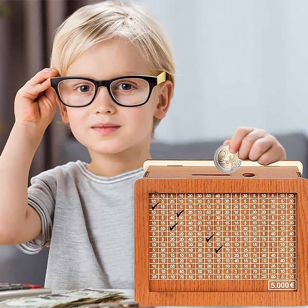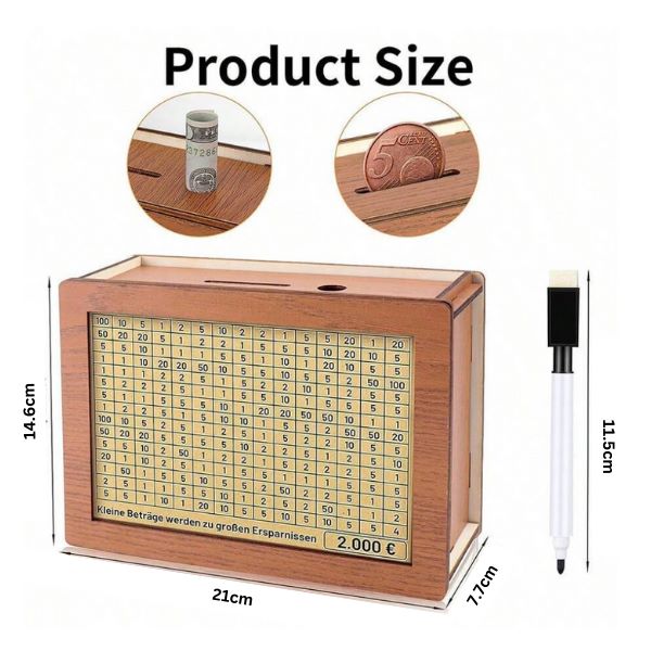 1 x COINSAVE medinė pinigų taupymo dėžutė