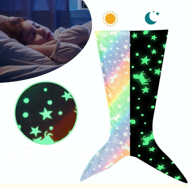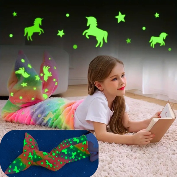 MERMAIDREAM antklodė šviečia tamsoje, skleisdama raminančią šviesą, kad sumažintų naktines baimes. Paprasčiausiai 20 minučių ištieskite ją dienos šviesoje, ir ji švelniai švytės visą naktį. Pasirinkite ryklio uodegos arba undinės uodegos dizainą, kad jūsų vaikas būtų apsuptas magijos kol miega.