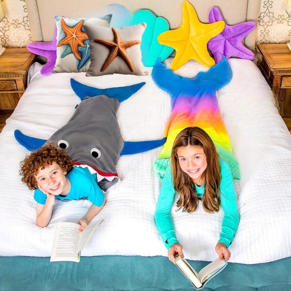 Rinkitės ryklio uodegos arba undinės uodegos antklodę. Ši antklodė idealiai tinka energingiems vaikams, mėgstantiems žaisti ir apsimetinėti, todėl patenkins jų laukinę prigimtį ir tuo pat metu išlaikys šilumą.