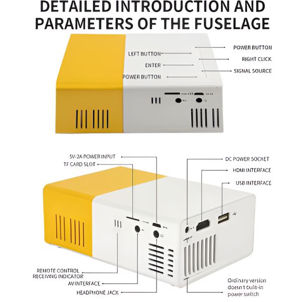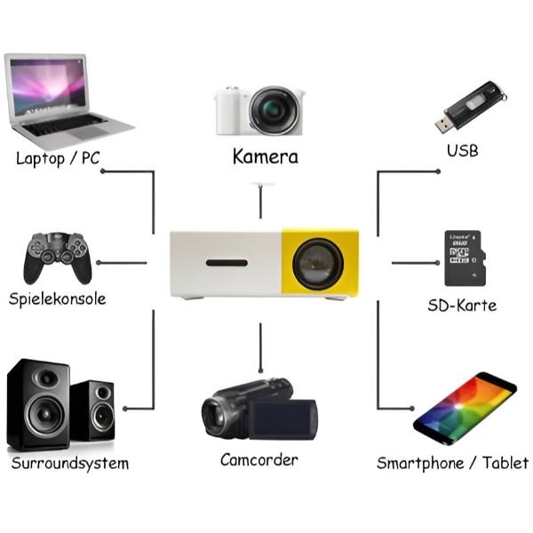 Turėdamas daugybę prievadų, tokių kaip USB, HDMI ir AV, šis projektorius užtikrina malonumą, nesvarbu, kokį įrenginį naudojate.