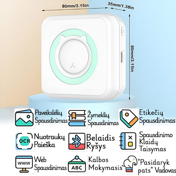 Mini nešiojamasis Bluetooth spausdintuvas – spausdinkite tiesiai iš savo išmaniojo telefono! 📲🖨️