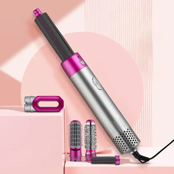 5 viename plaukų formavimo prietaisas – džiovintuvas, garbanojimo žnyplės ir glotninimo šepetys | DYME