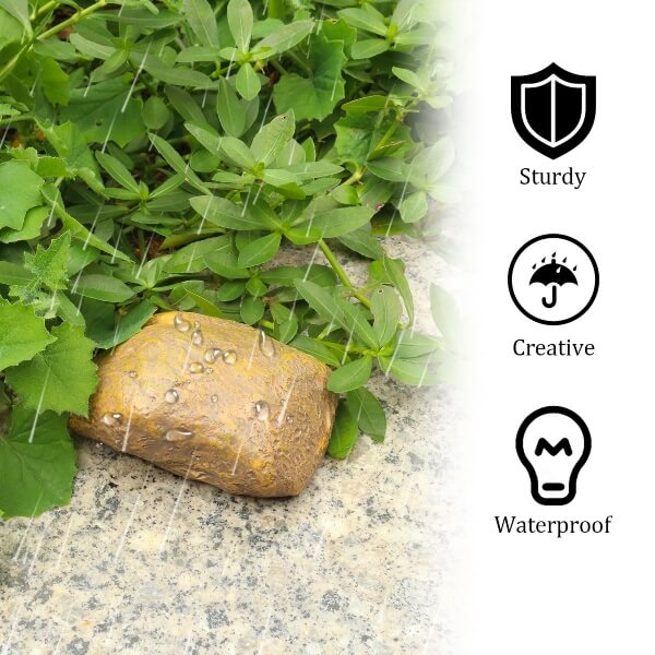 Šis akmens formos raktų laikiklis puikiai įsilieja į lauko aplinką, užtikrindamas, kad jūsų raktas išliks saugus ir paslėptas.