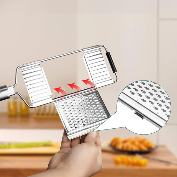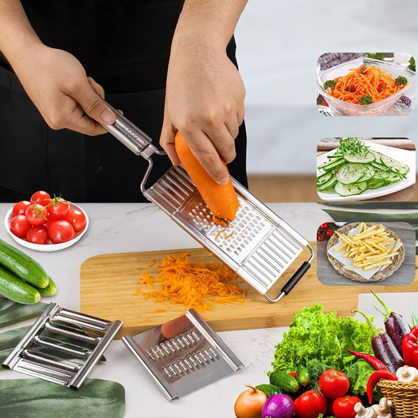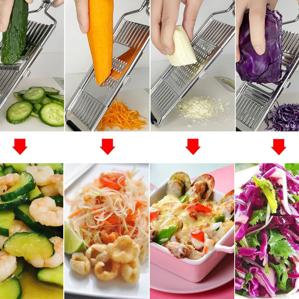 🧑🍳 Daugiafunkcinis dizainas: Pjaustykite, tarkuokite ir smulkinkite vienu įrankiu—puikiai tinka salotoms, bulvytėms ir greitiems patiekalams.