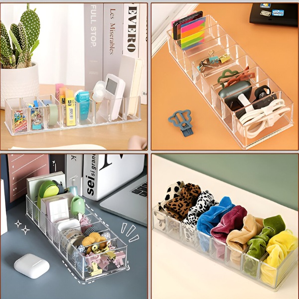 Laikykite prieskonius, indus ar smulkius įrankius šiuose permatomuose daiktų organizatoriuose su saugiais dangteliais, kurie apsaugo virtuvės reikmenis nuo dulkių. Sumontuokite juos spintelėse arba ant sienų, kad būtų patogiai pasiekiami, o patiekalų ruošimas taptų greitesnis ir efektyvesnis.
