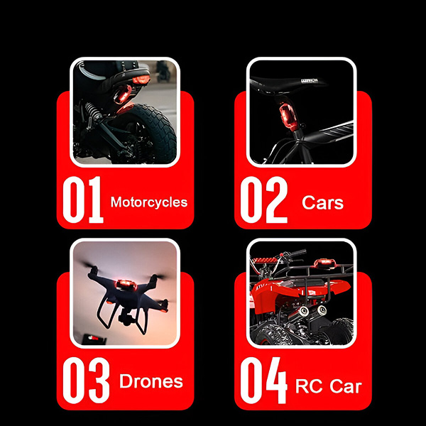 Šie žibintai yra neįtikėtinai universalūs ir sukurti taip, kad tiktų automobiliams, motociklams, dviračiams ir dronams. Pasirinkite vieną iš „Velcro“ ir guminių žiedų montavimo būdų, kad galėtumėte saugiai ir paprastai įrengti. Nereikia sudėtingų įrankių ar profesionalios pagalbos.