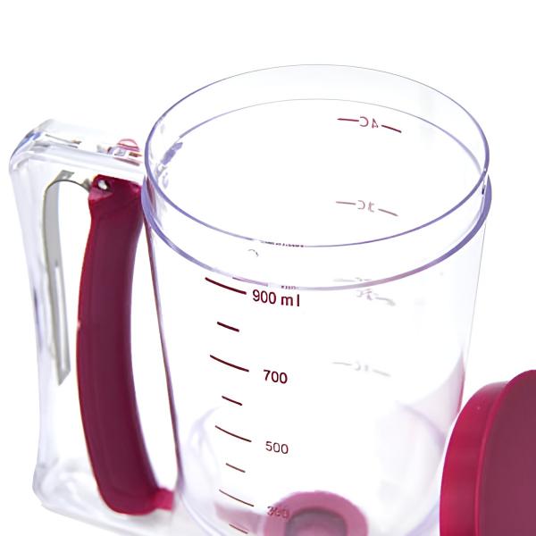 Plati anga viršuje leidžia lengvai pripildyti indą, todėl mažiau tešlos išsilieja. Paprastas sprendimas švaresnei virtuvei ir malonesniam maisto gaminimui.