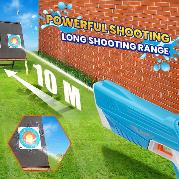 maždaug 8-10 metrų (vandens pistoleto negalima panardinti į vandenį)